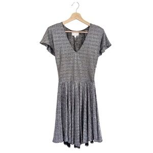 Alexis Skyla Metallic Flutter Sleeve V Neck Mini Skater Dress in Silver / Black, Size Small.