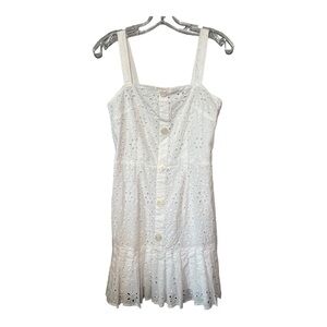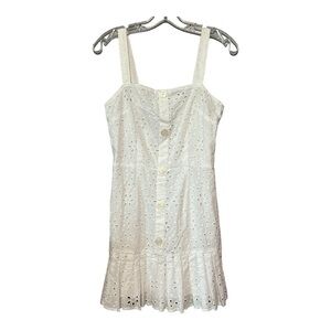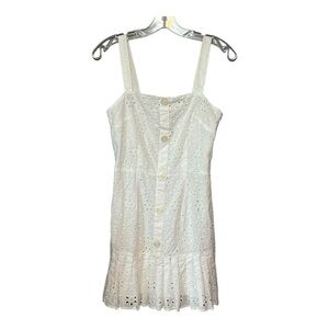 Alexis Smocked Eyelet Dress White Sleeveless Button Pleated Ruffled Tiered Mini