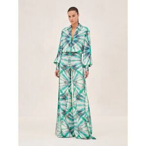 Alexis Tie Die Eres Button-Up Top Wide Leg Andy Pants Green Kaleidoscope Size XS
