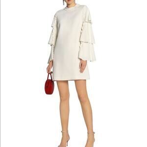 Alexis Tiered flared long sleeves London mini ivory Dress XS