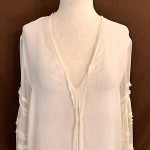 Alexis White Silk Top Sheer Sleeve Ties Size Small Womens Blouse