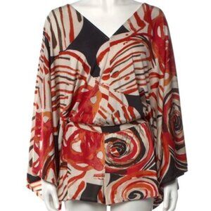 Alexis Wide Sleeve Multicolor Floral Striped Abstract Print Romper Playsuit