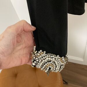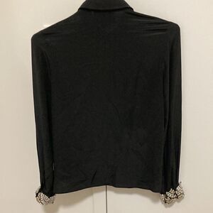 Alexis Woman’s Black Silk Button Front Long Sleeve Blouse with Jeweled Cuffs.