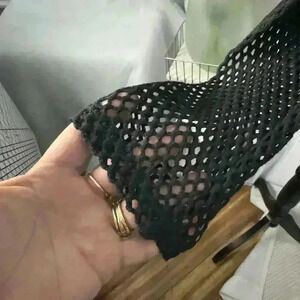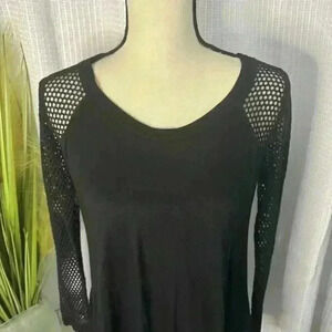 Alexis Women’s M Blouse Open Crochet Knit Long Sleeves Black Tunic Top