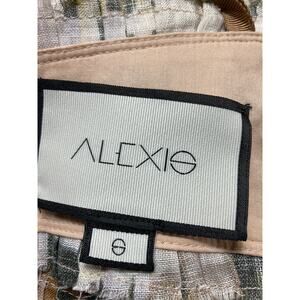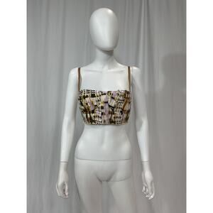 Alexis 'Yarie' White Top Size S: back hook and eye closure, adjustable shoulder straps, pleated fabric with frayed edges.