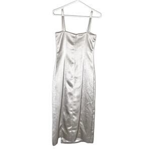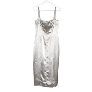 Alexis Yates Metallic M'o Exclusive Satin Slit Cocktail Dress Silver Size M
