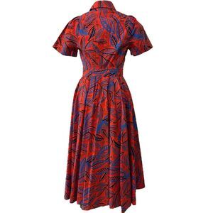 Alexis for Target Tropical Leaf Midi Shirt Dress Flare Skirt Red Blue