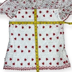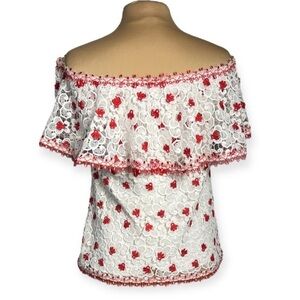 The Alexis white and red crochet lace off-the-shoulder top is a stunning and elegant garment. Designed by Alexis, a renowned fashion brand, this top features a beautiful combination of white and red crochet lace. The off-the-shoulder style adds a touch of allure and femininity, showcasing your shoulders in a tasteful way. With its NWT (new with tags) condition, you can expect this top to be in impeccable, unworn condition, ready to elevate your wardrobe. Whether you're attending a special occasion or want to make a statement with your everyday outfits, the Alexis white and red crochet lace off-the-shoulder top is a chic choice that effortlessly combines sophistication and modern fashion.