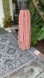 these beautiful pants have a red white and blue with a little bit of yellow fine stripe through it. The pants are asymmetric they’re rounded at the ham and they have like a crossover wrap, but actually are open to the upper thigh for a leg show. There is a back zipper. I can’t find a fabric tag but this feels like silk to me and I’ve been fondling fabrics for over 30 years. In excellent condition.