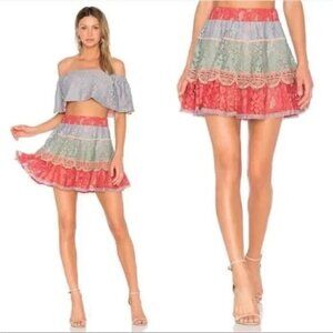 Zowie tiered lace Mini skirt and off the shoulder cropped top