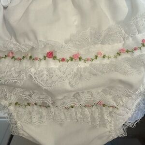 Alexis vintage white lace floral puff sleeve dress/top and bloomers 0-3 months