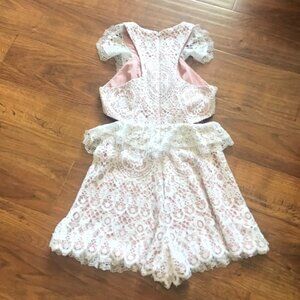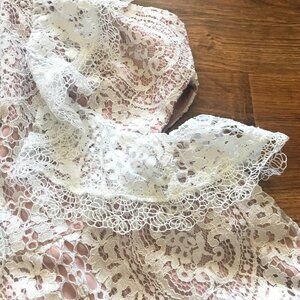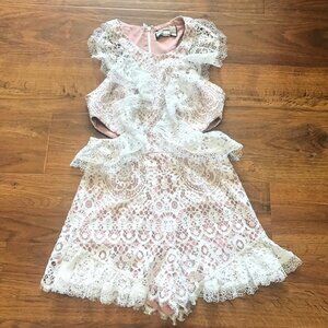 Alexis Barbara ruffle lace romper in ivory with nude blush lining