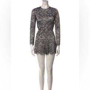 Alexis Romper Black Lace Pattern Lace Trim Embellishment Long Sleeve with Crew Neck Exposed Zip Closure at Back Details
