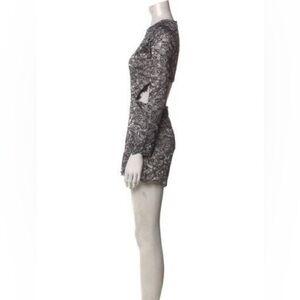 Alexis Romper Black Lace Pattern Lace Trim Embellishment Long Sleeve with Crew Neck Exposed Zip Closure at Back Details