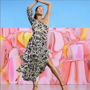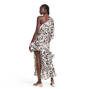 Alexis x Target Botanical One Shoulder Ruffle Maxi Dress Black Sz XXS
