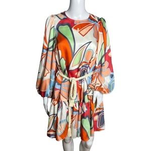 Alexis x Target Dress Womens Small Mini Multicolor Retro Floral Tiered Rope Belt