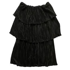Alexis Black Plisse Tiered Pleated Ruffle Strapless Mini Dress Size Extra Small