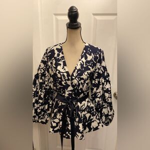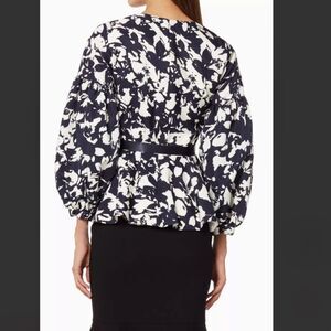 This Alexis blouse showcases a bold black and white graphic design with a boxy fit. The tie front detail adds a chic touch, making it a standout piece for any wardrobe.New, no tags