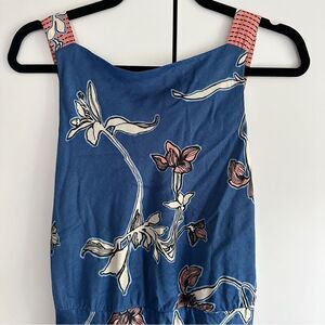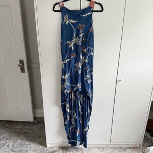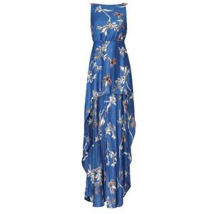 Blue floral woven (100% Rayon). High-low hem. Gown.