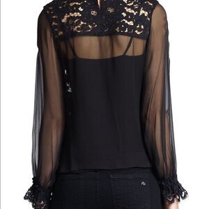 Alexis Scalloped Black Lace Shear Sleeves Blouse