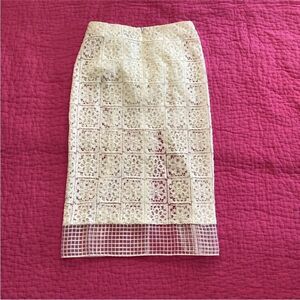 Alexis White Midi Pencil lace Skirt with Slit , XS