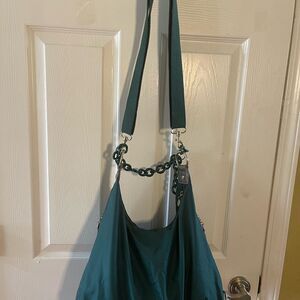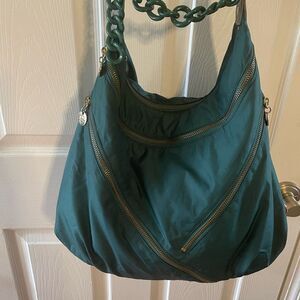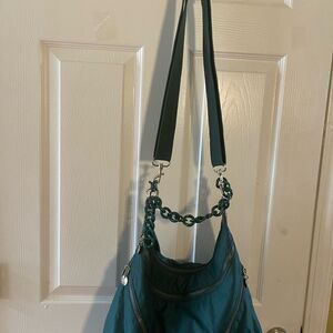 Alexisuospny Nylon Green large shoulder bag Chain Strap gold tone hardwares Perfect for adding a pop of color to any outfit.two front zipper pockets top zipper the inside lining has a side zipper and a side pocket. Pre owned in good used condition clean the green plastic chain is broken see all pictures any questions please message.