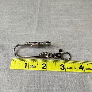 Fun and pretty key holder for your purse! It hangs over the edge to keep keys handy at all times. Decorated with a wine bottle, grapes, and a filled wine glass, the colors are beautiful in greens and purples. In excellent condition, it is marked on the back. Marked "ALEXX INC" and a Patent number and Made in China. It measures about 1" wide and 2" tall on the outside and 3" on the inside. Has a large clasp to hold the key ring.