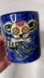 So cute and rare! Dark blue mug with day of the dead/skeleton chihuahua holding a bone. Colors include blue, gray, yellow/green, black, red and white. Handmade in Mexico. Makes a great gift for any animal lover.