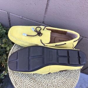 Alfani yellow leather suede slip on shoes
