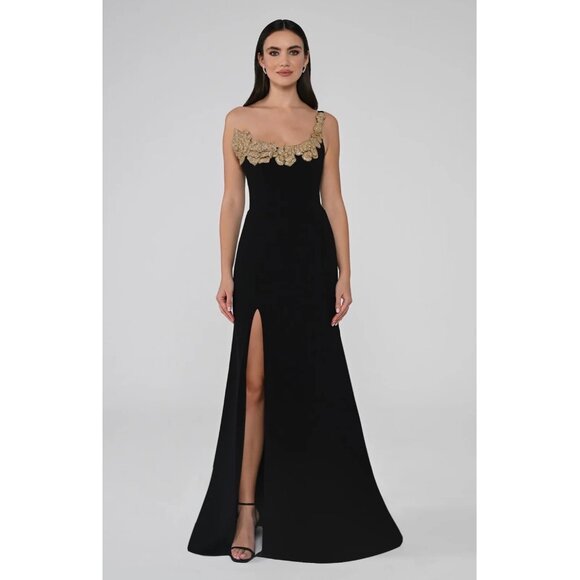 Alfabeta One-Shoulder Crepe Gown with Embellished Neckline Size 6 Retails $1,150