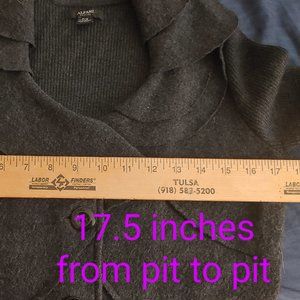 Alfani 100% merino wool button-up sweater is dark grey and used. It is in fair condition with a hole.