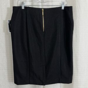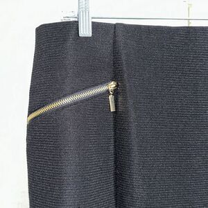 Alfani 14 Modern Edge Deep Black Ribbed Gold Tone Zip Details Pencil Skirt NWT