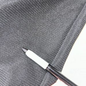 Has a left mid back bottom pull above the pen in the picture that is not noticeable due to ribbed texture