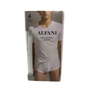 Alfani 4-Pack 100% Cotton V-Neck Regular Fit Tagless Men's T-Shirts White XL