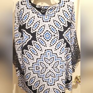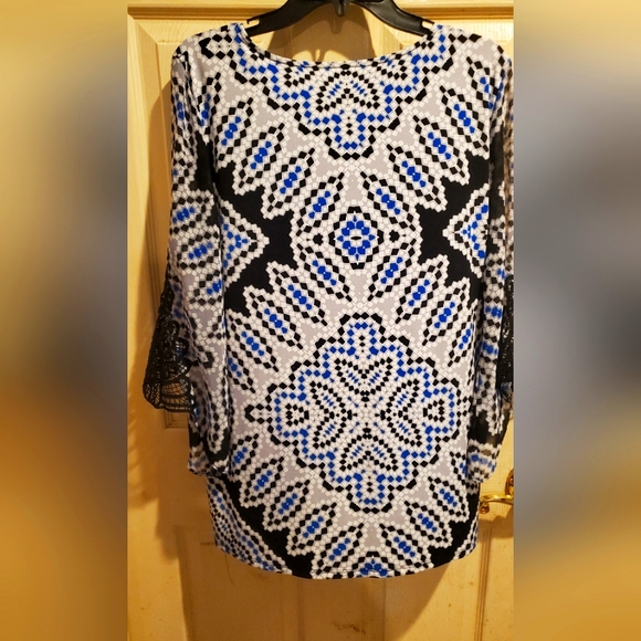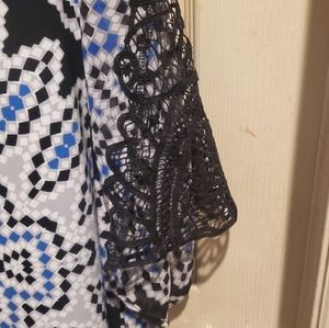 Beautiful diamond design top with a little navy lace details on the sleeve. colors white,grey, royal blue, navy.No flaws
