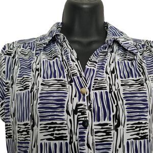 Alfani Abstract Print Blouse Size Small Navy White Short Sleeve Contemporary