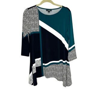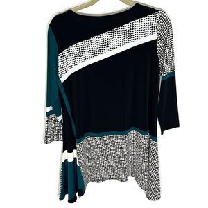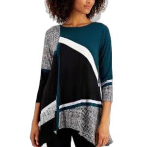 Alfani Abstract-Print Swing Top Green Black White 3/4 Sleeve Size Small
