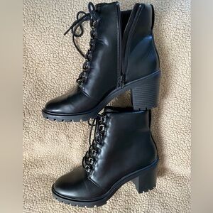 Alfani Ankle Faux Leather Lace Up /Zip Black Boot Size: 8M