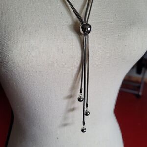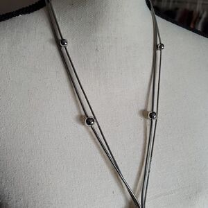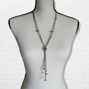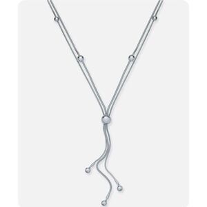A fashionable double stranded lariat necklace is adorned with polished beads in this chic piece from Alfani.