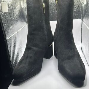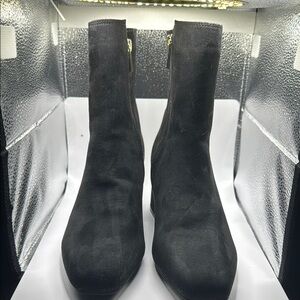These Alfani ankle boots in black offer a sophisticated look with their minimalist design and side zippers for easy wear. The moderate block heel provides both style and practicality, making them a versatile choice for any occasion. Crafted with attention to detail, these boots are a timeless addition to your footwear collection.