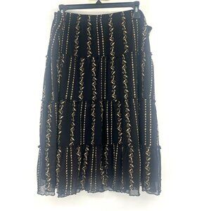 Alfani Black Beige Embroidered A-Line Skirt Women's 2X Excellent Condition - No Flaws Polyester/Rayon Blend Elastic Waist Waist: 19.5" Length: 27"