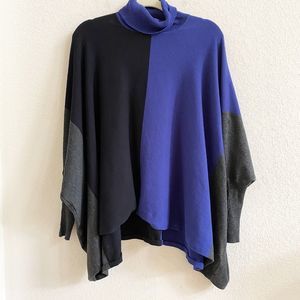 Alfani Black Blue Grey Colorblock Asymmetrical Hem Turtleneck Poncho Sweater Small