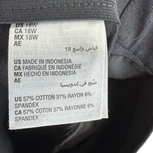 Excellent preowned condition. Black high rise cropped straight leg dress pants with contrasting white trim detail. Have elastic in waistband. Zipper/hook closure with hidden button in waistband. Slash pockets on back, still factory sewn shut. Cotton/rayon/spandex material. Approx. measurements: Waist 40", inseam 26", rise 11". Size 18W.
