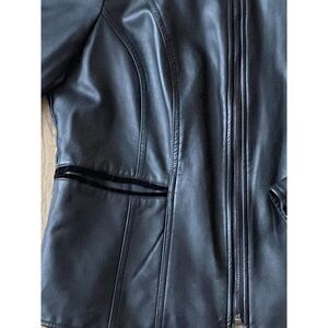 Alfani Black Faux Leather Jacket Women’s L Zip Front Velvet Trim Moto Style