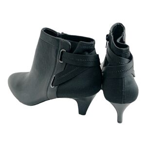 alfani boots, womens ankle boots, black kitten heel boots, leatherette booties, stretch boots, zip up booties, grommet detail boots, womens size 10 boots, fashion heels, alfani shoes