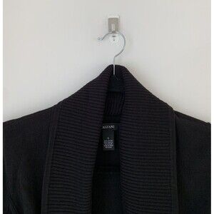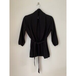 Alfani Black Open Front Belted Knit Cardigan 3/4 Sleeve- Women's Size Small