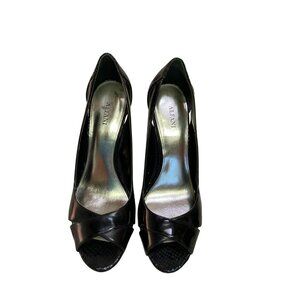 Alfani Black Patent Leather Peep Toe Pumps Size 9 Womens Elegant Heels