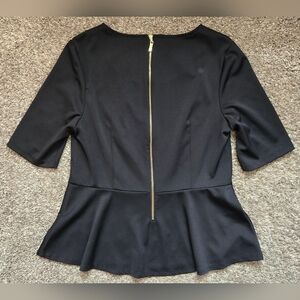 Alfani Black Peplum Blouse With Gold Zippered Back Size Medium
