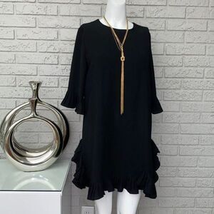 Alfani Black Pleated Ruffle Sleeve Shift Dress Size M