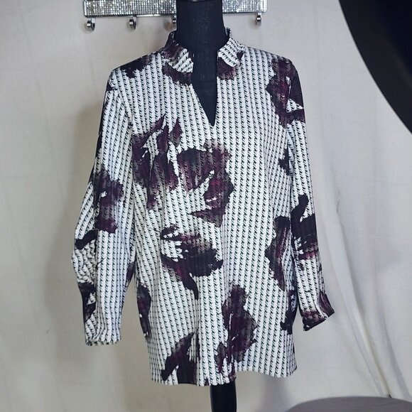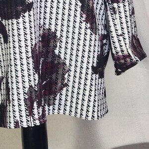 Alfani Black and Plum Abstract Houndstooth Floral Pattern Long Sleeve Poly Span Pullover V-Neck Top Size L...Really Nice Pattern and Fabric...This Top has a Ton of Potential in Being Casual or Dressy....Really Nice Top will Bring the Compliments....Like Brand New....